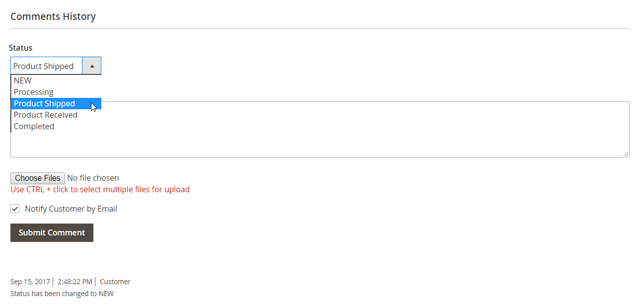 One of the useful features of the Magento 2 returns add-on is the ability to assign requests to particular managers automatically. For example, if a request gets the “Shipped by Customer” status, it will be forwarded to an appropriate manager. Besides, you can set conditions that will trigger automatic email notifications sent to admins or customers. This feature might come in handy when a request hasn’t been processed after some time.