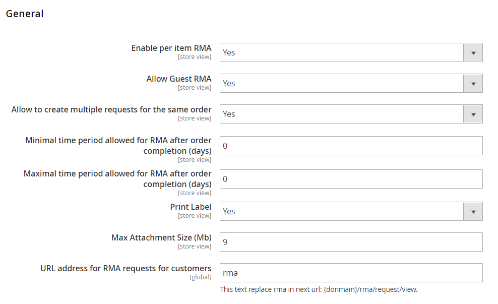 - New: “URL address for RMA” was added to the General Settings. Now you can specify the custom URL address for RMA requests.