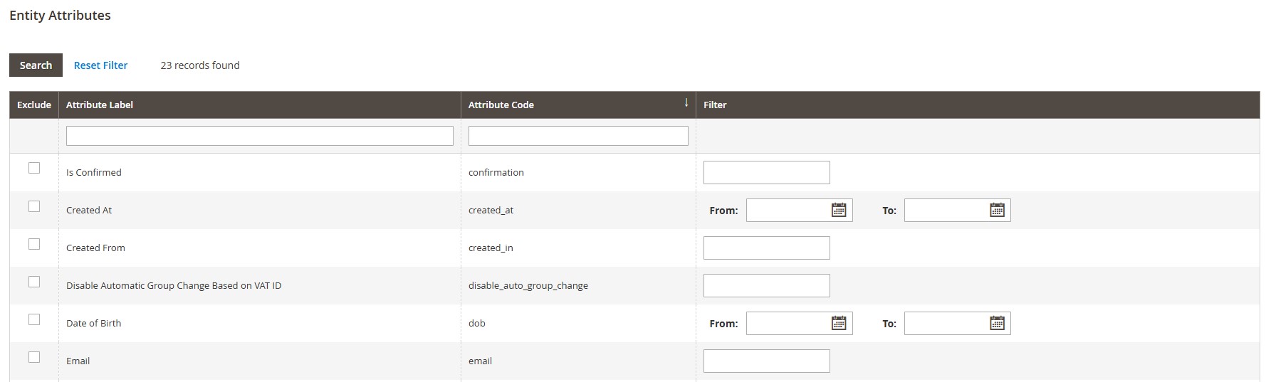You can find the detailed description of the entities you export in our Magento 2 Customer Import guide. This makes it easy to generate marketing lists, prep for migrations, or build offline backups — all in just a few clicks. However, the default data exported is associated with a couple of limitations.
