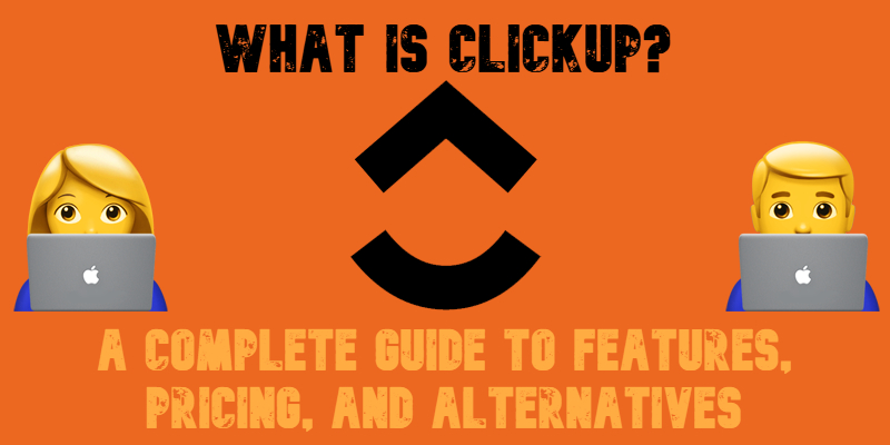 illustrative image for "what is clickup" guide with clickup logo, emojis and text