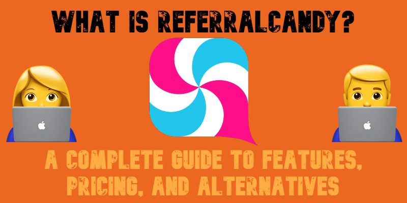 illustrative image for "what is referralcandy" guide with referralcandy logo, emojis and text